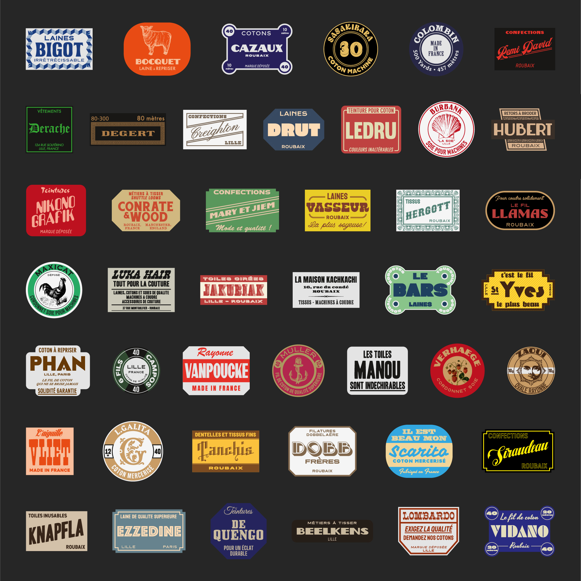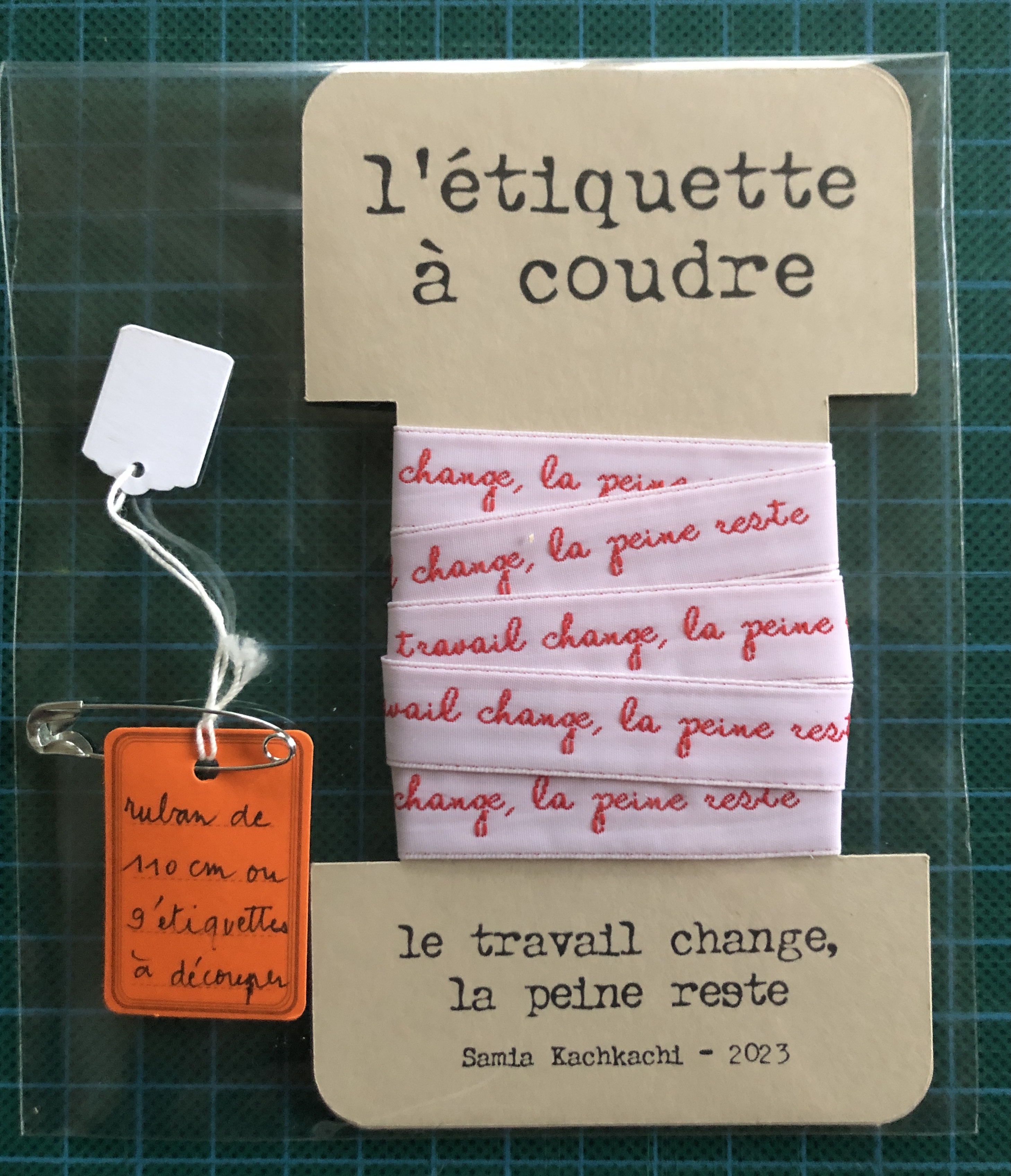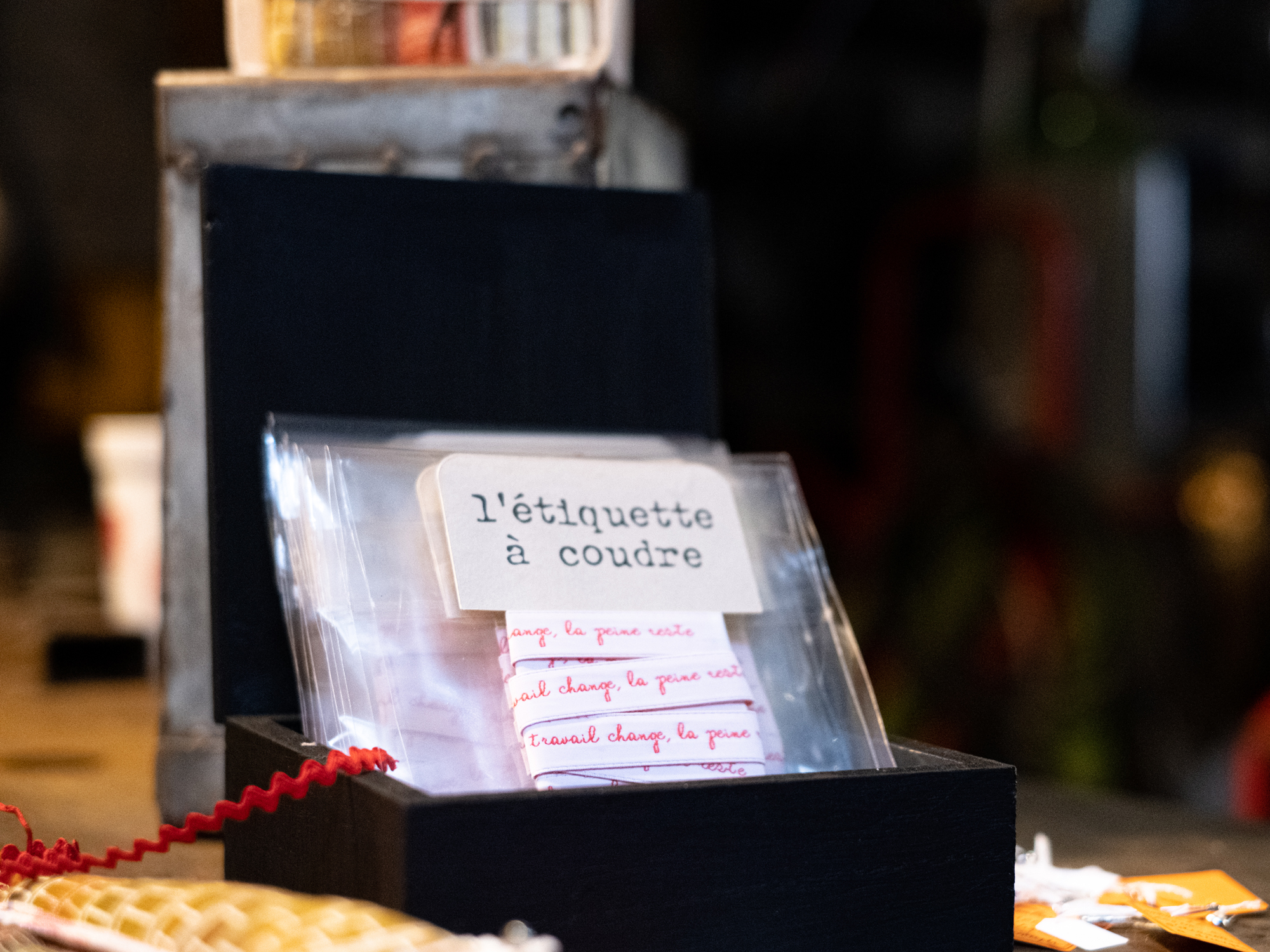 des étiquettes à coudre broderie industrielle, présentées façon mercerie