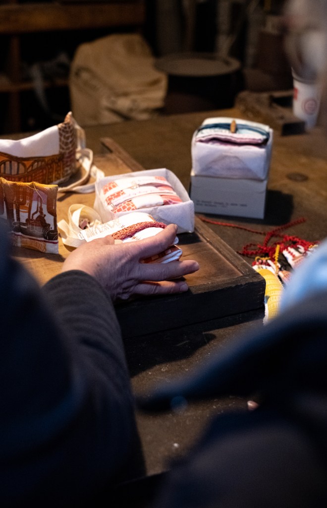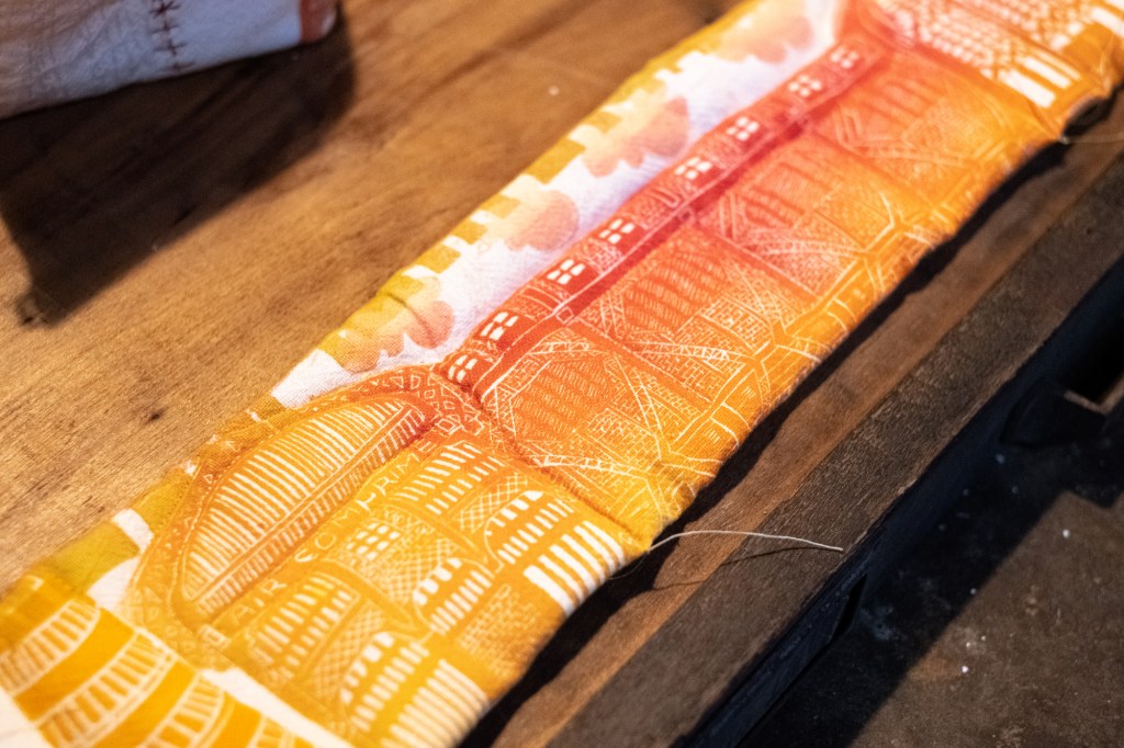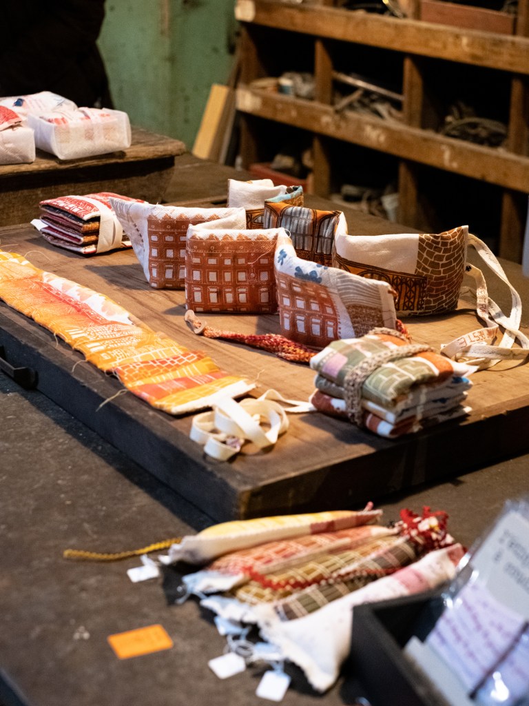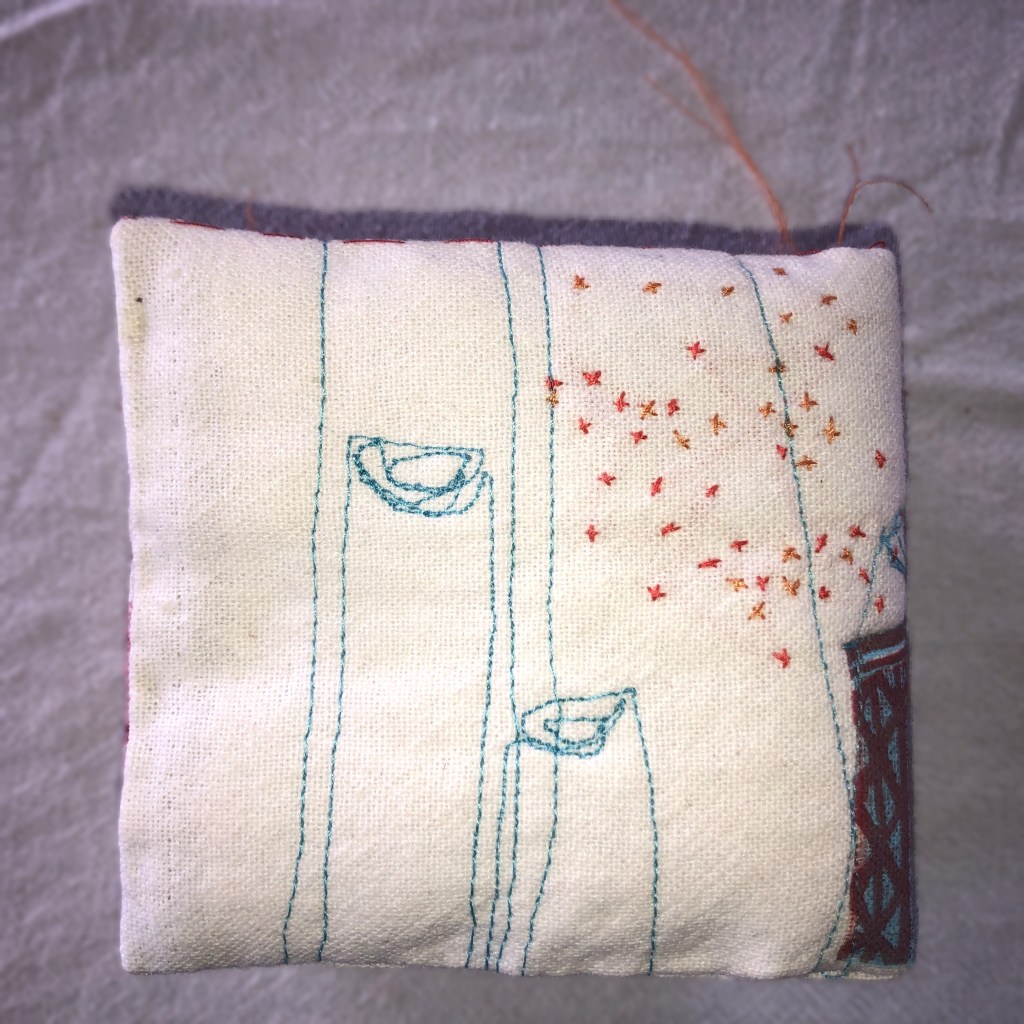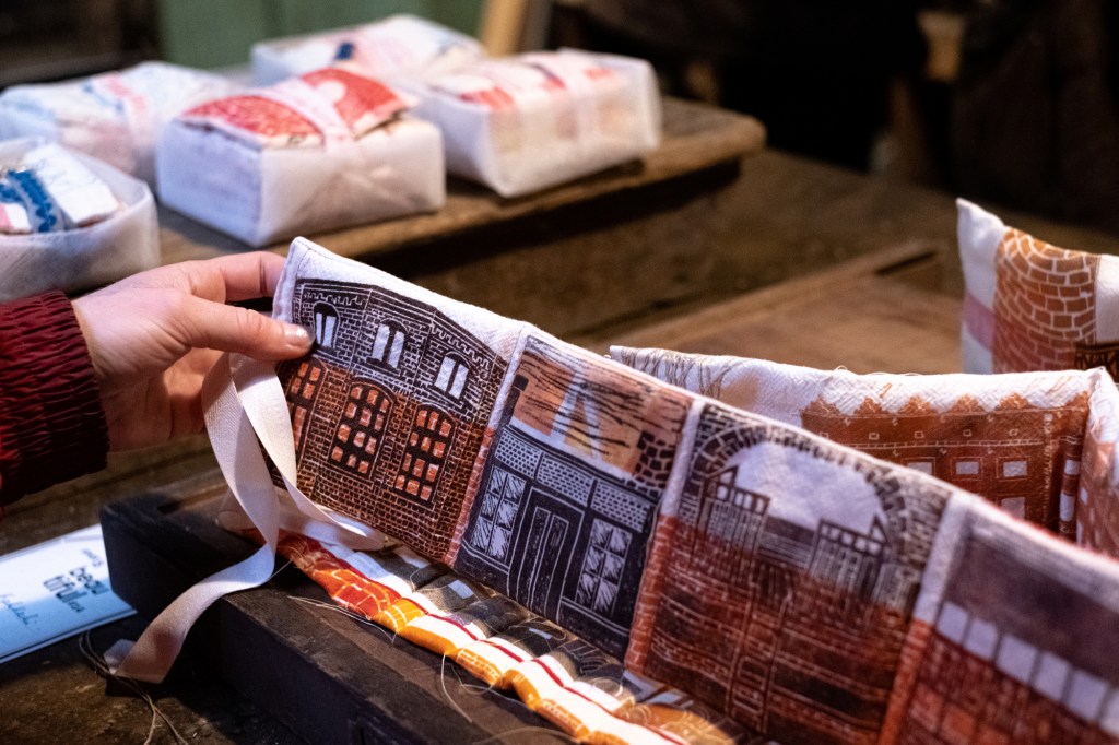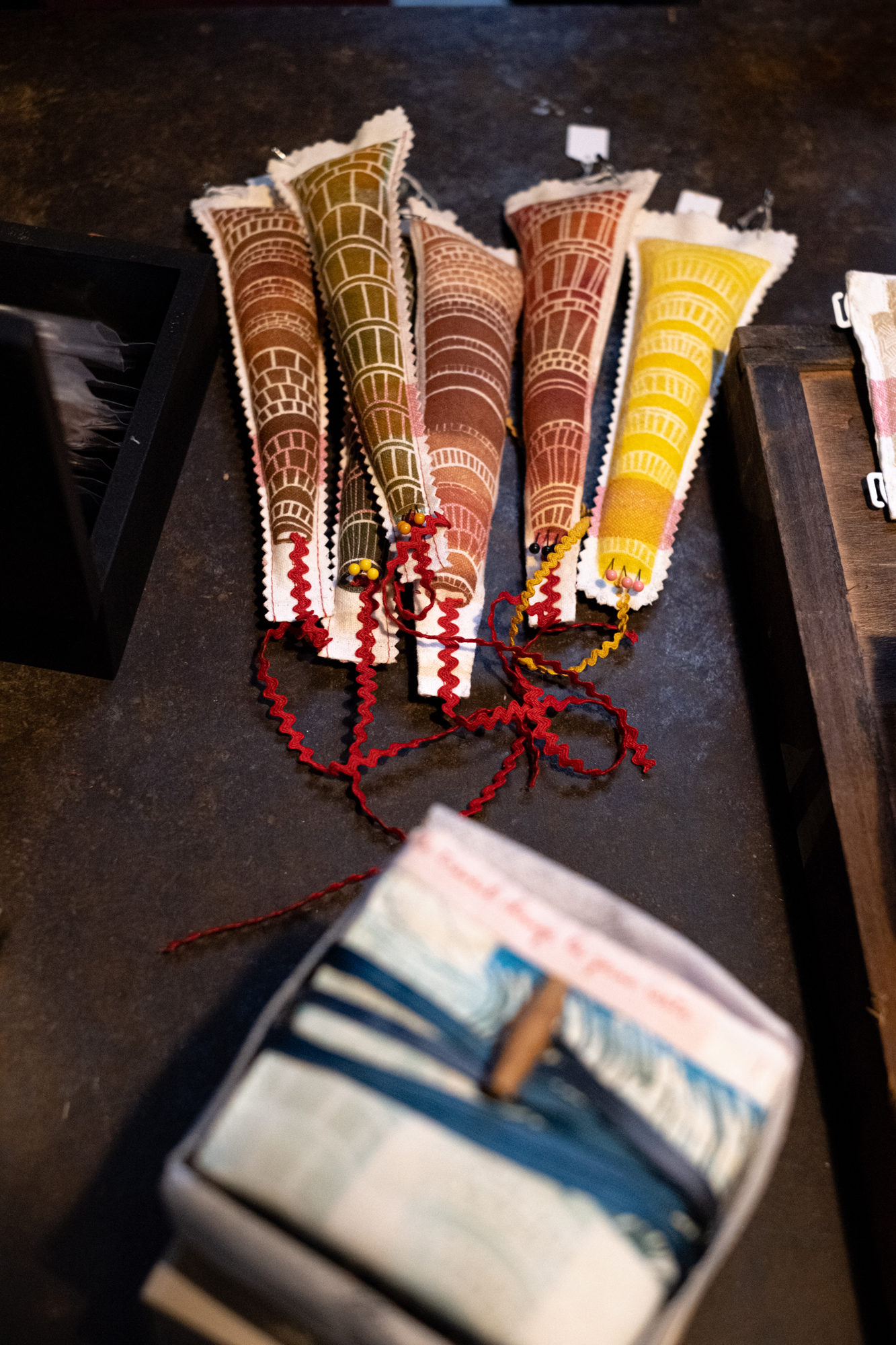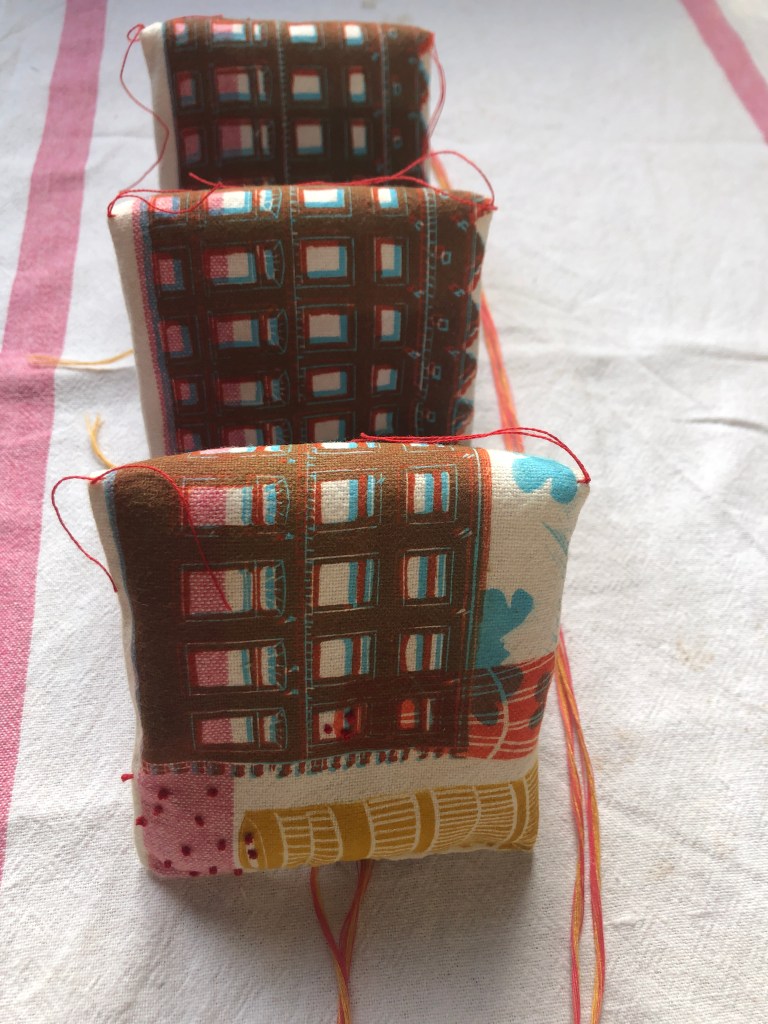 des cheminées porte-épingles à coudre : impressions lino et au recto tampon « Cheminez »
