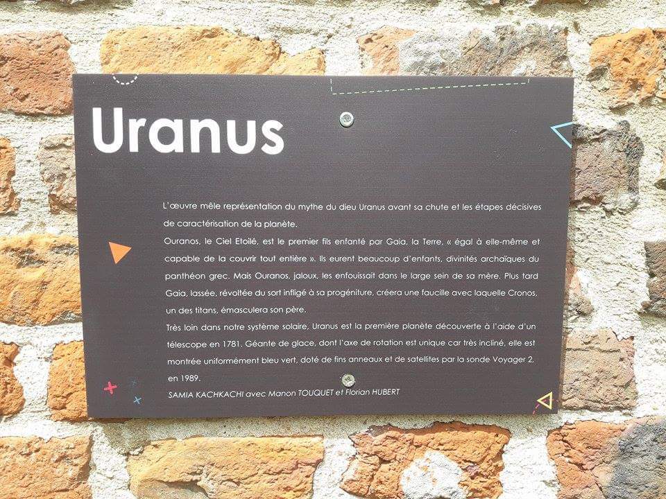 Dans le cadre d’un projet intitulé Passeur d’espace et d’histoire j’ai travaillé, autour du processus créatif, avec deux lycéens de l’établissement d’excellence Edgar Morin à Douai, sur la figure d’Uranus, mythologie et astronomie.